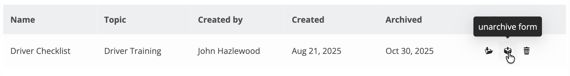 Archived forms can be located by sorting by Archived status.