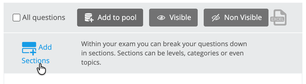 At the top of the page, you can add sections to the exam by selecting the Add Sections button.