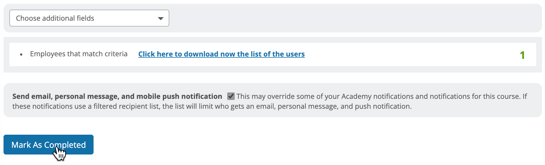 Once you have selected the users that you want to mark as 'completed' click on the Mark as Completed button to complete the process.