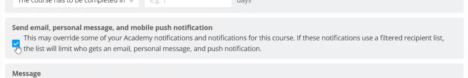 NOTE: As before, these options, if selected, will supersede the academy notification.