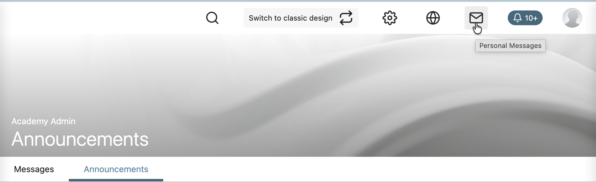 Navigate to the Announcements page by selecting the envelope on top of the page, then the Announcements tab.
