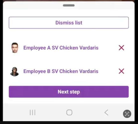 Tapping the View list button at the bottom of the screen will bring up a list of all members already scanned during this session. When finished, the manager can then tap Next step at the bottom of the list to proceed.