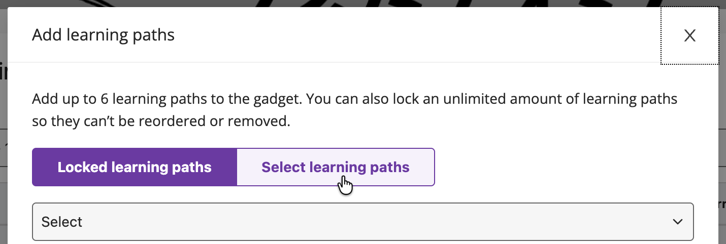 Specific learning paths can be displayed by selecting the Select learning paths button at the top of the gadget.