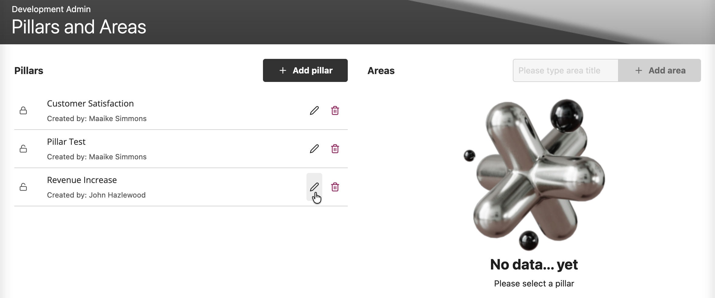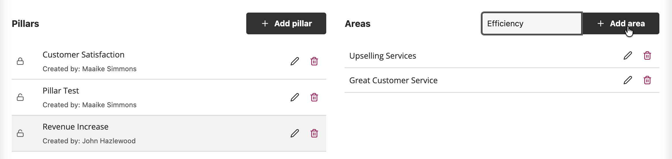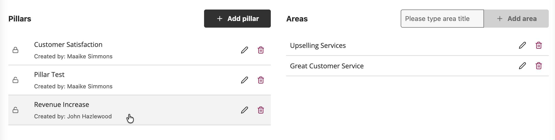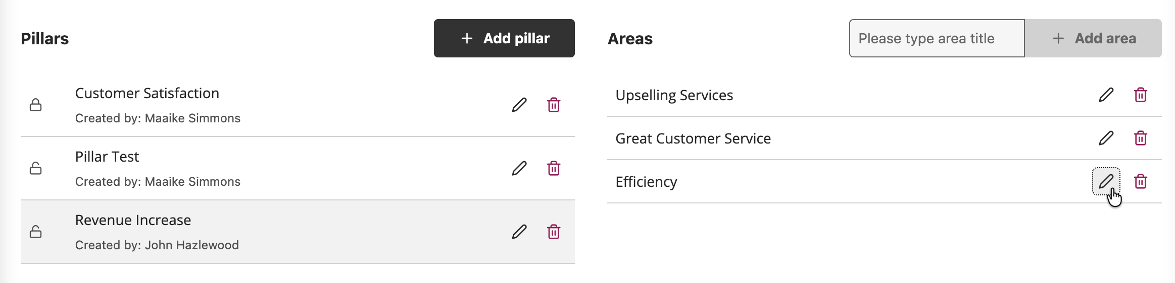 To add a Pillar, select the Add pillar button. To edit a pillar, select its pencil icon.