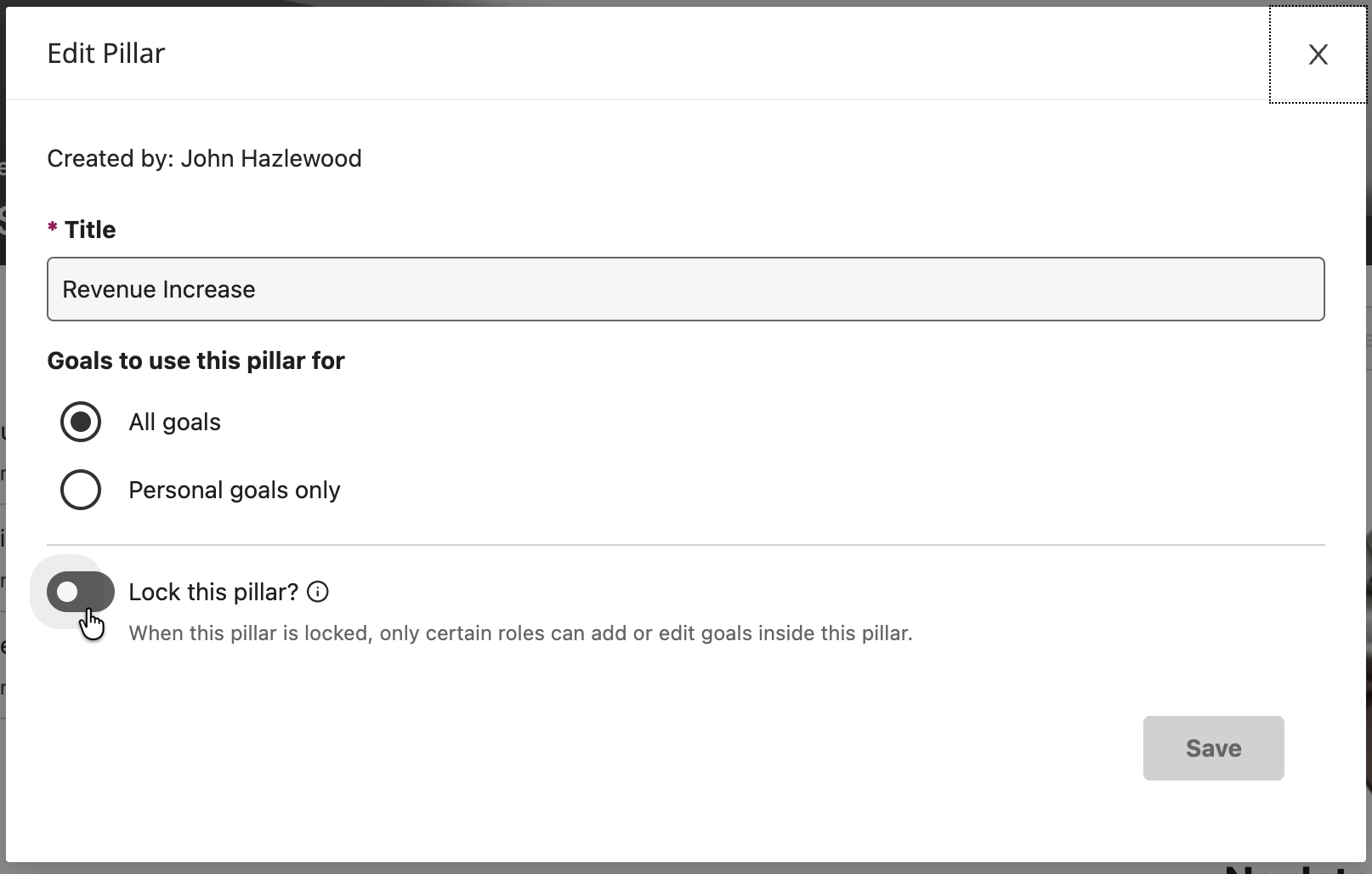 This release updates Goals in the Academy Workspace to better align with the New Experience design language. Specifically, this covers adding and modifying pillars and areas. This can be found in the Academy Workspace > Development Admin > Goals.