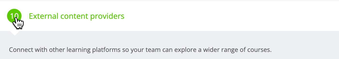 To enable Go1 integration in your academy, select the Academy Workspace. Then select Settings, then External content providers.