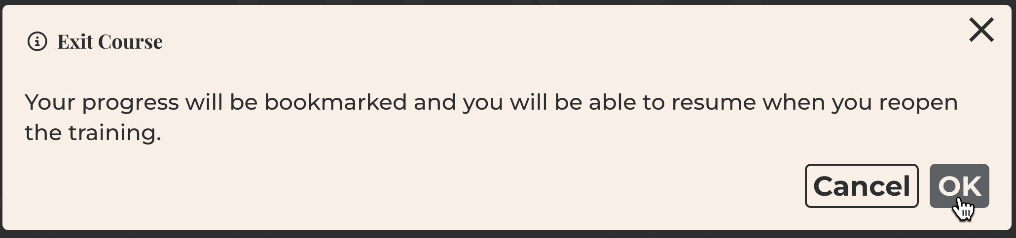 Progress will be tracked, though the learner may need to start, for example, a specific chapter over if they close the course and come back later.