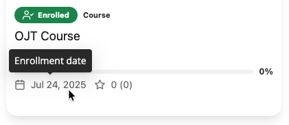 - For courses, learning paths, OJT's and microlearning, each item will show the enrollment or assigned date.