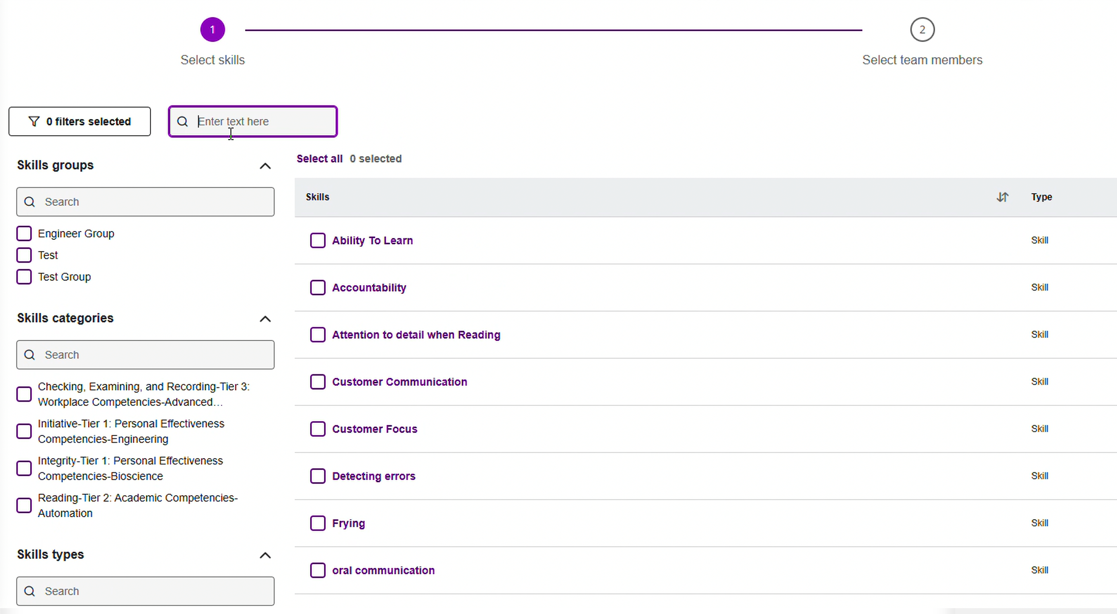 Moreover, the process has switched. Instead of first selecting the skills and then the individuals that should be associated with those skills, the skills are now first selected, followed be the individuals. Otherwise, the functionality remains the same.