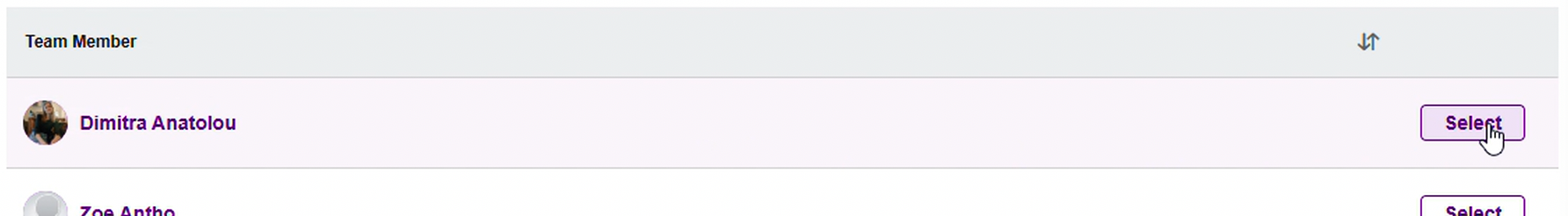 To start the assessment process, select the user's Select button.