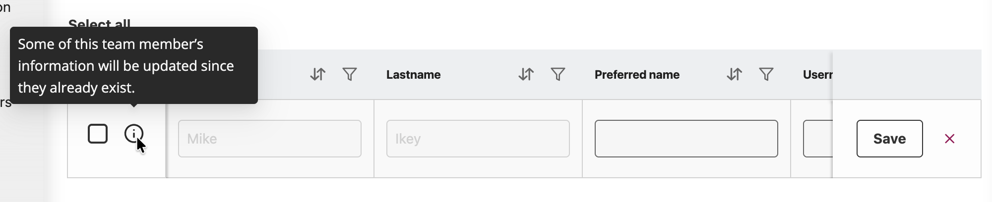 This warning symbol especially helps when uploading multiple users via the template, as you can distinguish those individuals from additions.