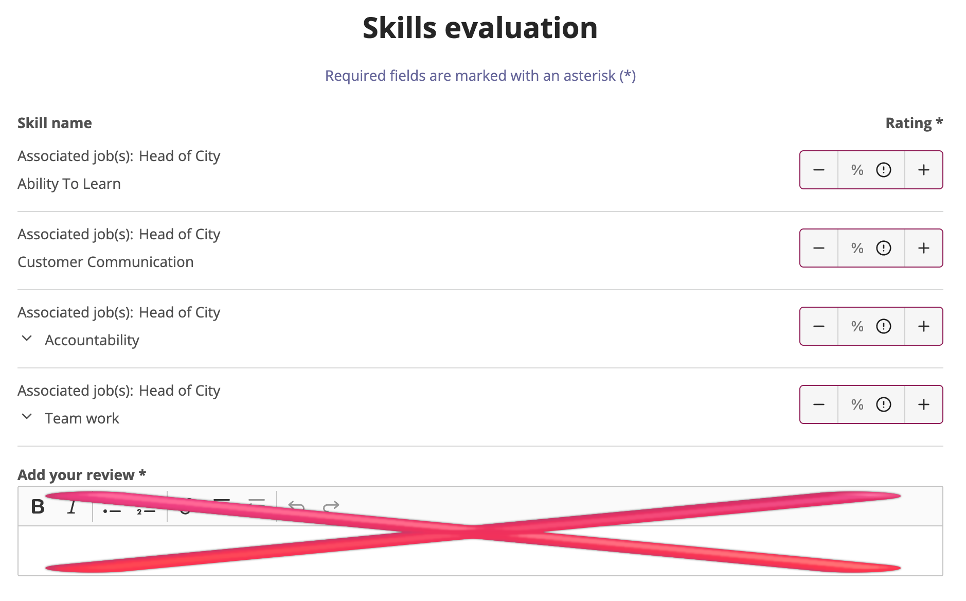 This release introduces a "Rate Only" configuration option within the create Performance Review Profile or Template page. This feature will allow system administrators and HR teams to create specialized review templates that limit reviewers to providing numerical or scaled ratings only, disabling the ability to submit any free-text comments or qualitative feedback.