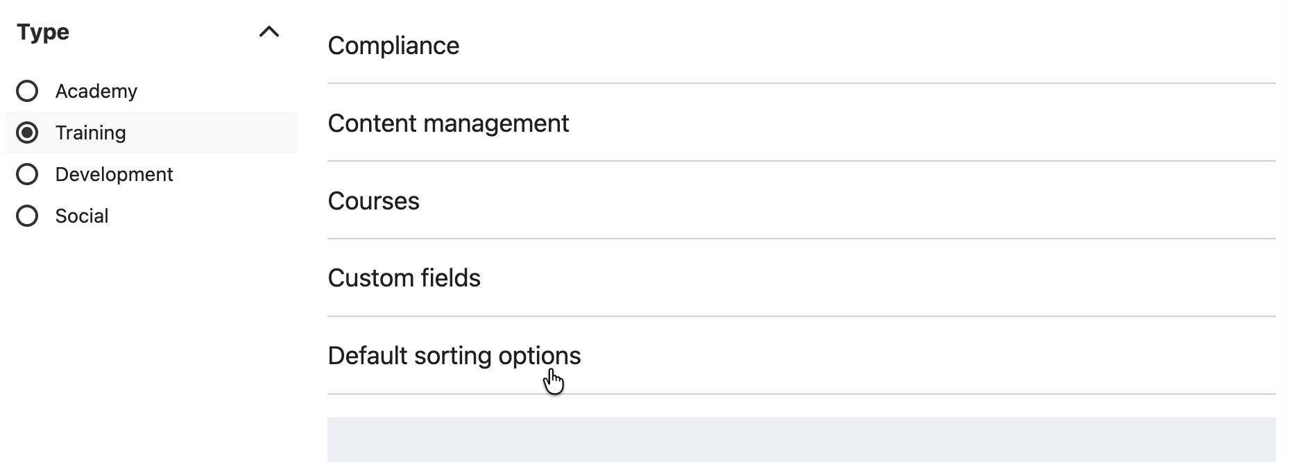 Select the Training filter on the left, then Default sorting options.