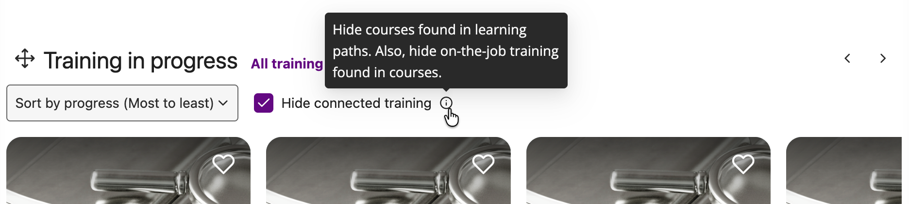 It will also appear in the In Progress and Completed tabs in My Training as a filter.