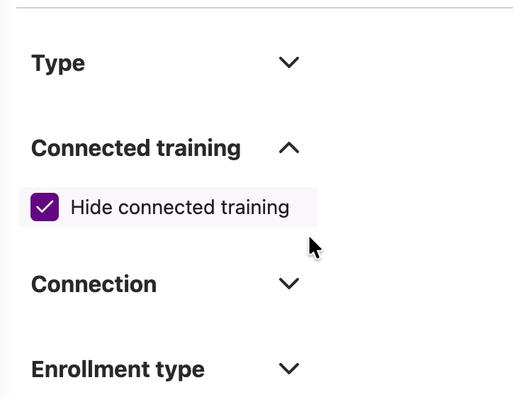 The Hide connected training checkbox will be enabled by default, and found in the following streams: